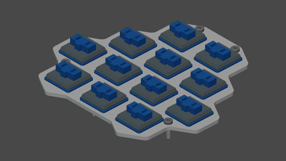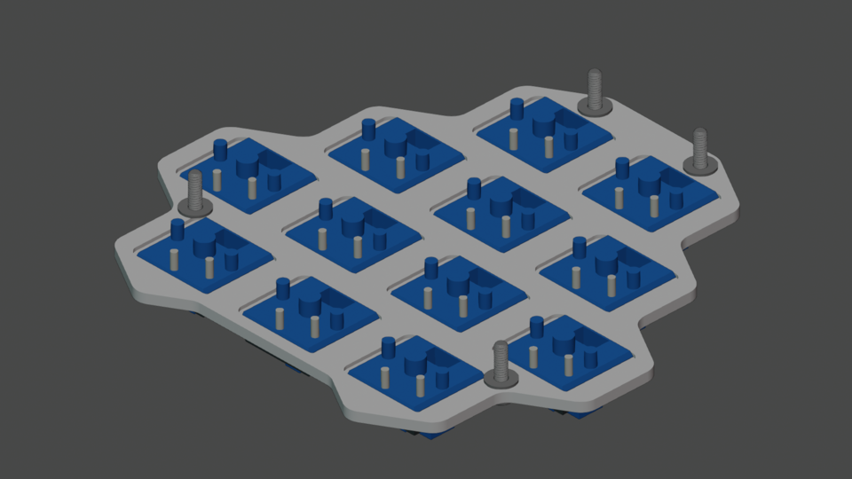 Once all switches are inserted, add the four M2x8 screws in the four mounting holes.